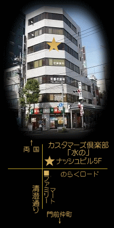 店名 カスタマーズ 水の 住所 〒135-0005 東京都江東区高橋13-15 ナッシュビル5F TEL 03-3632-6577 営業時間 20:00~23:30 定休日 土・日・祝日休み メール MAP アクセス 地下鉄都営新宿線森下駅 徒歩5分 大江戸線森下駅 徒歩5分 半蔵門線清澄白河駅 徒歩5分